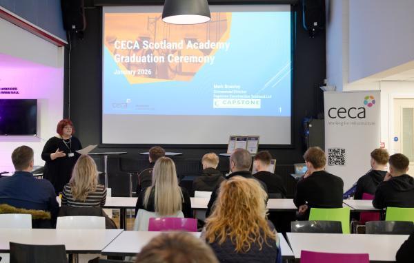 The graduation ceremony featured a presentation by CECA Scotland on opportunities within the sector, alongside Claire Thomson, Curriculum Manager for Engineering, Construction and the Built Environment, who spoke about the hands-on nature of the course and the support provided by CECA and industry partners.
