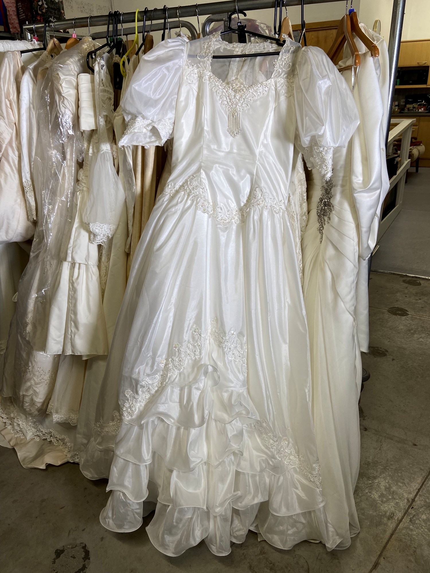 The dresses, generously donated to Highland Hospice, span decades of changing fashion, from post-war elegance to 1980s grandeur and contemporary minimalism. While each gown reflects the style of its era, it also holds something far more personal: the memory of a wedding day, a family story or a life milestone. Students researched the social and cultural context of each garment, exploring how attitudes towards marriage, gender roles, economy and celebration have evolved over time.